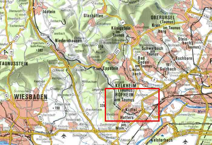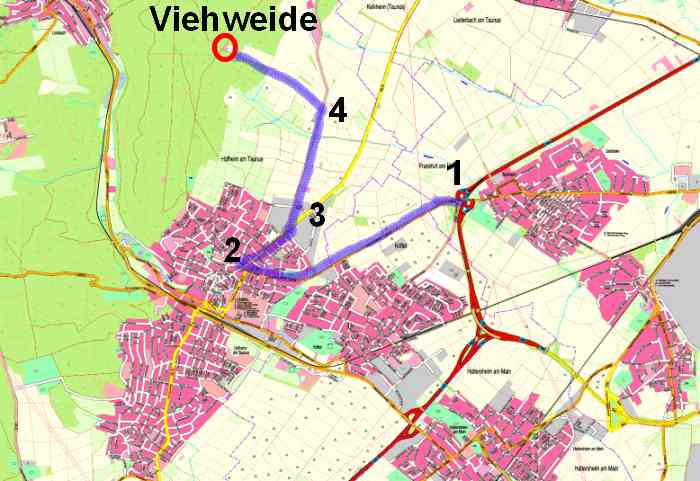- Ausfahrt Zeilsheim, etwa 1 km Richtung Hofheim. Beim Ortseingang (Ampel) ist links eine Aral-Tankstelle.