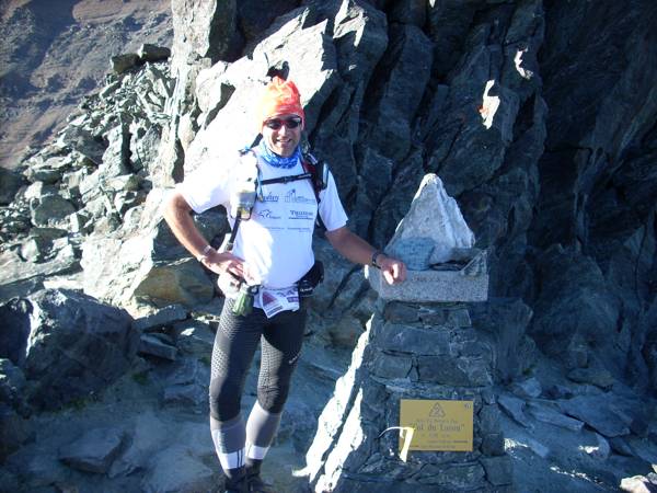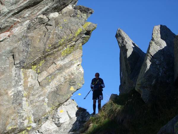 Unten bei der Verpflegung in Promoud (2022) bekam ich eine Ministronesuppe. Nach 10 Minuten war ich wieder auf der Piste. Ein böser Anstieg nach Col Crosatie (2838) stand an. Von den Beschreibungen im Vorfeld wusste ich von einigen gesicherten Kletterpassagen. In der Dämmerung drückte ich mich den steilen Anstieg hoch. Es hat angefangen zu regnen also habe ich schnell meine Regenjacke angezogen. Gore-Tex ist hier absolut zu empfehlen. Es war dunkel geworden und die Stirnlämpchen wurden überall am Hang ausgepackt. Ich sah zurück und konnte eine ganze Lichterkette nach unten sehen. Sogar sah ich noch einige Lichter auf dem vorherigen Abstieg. Jetzt kam die gruselige Passage. Ein blaues Seil hing fest gekettet an der Wand. In das Licht meiner Stirnlampe sah ich ein begehbarer Streifen von etwa 15 cm breit. Links davon sah ich … nichts, rein gar nichts. Meine Lampe kann 180 m weit scheinen. Ich sah den Boden dort nicht. Dann ein Blitz und kurze Zeit darauf den Donner. Ich zuckte zusammen. Auch das noch. Vorsichtig fasste ich das Seil und in aller Ruhe bewältigte ich diesen gruseligen Abschnitt. So schlimm war es dann doch nicht. Direkt danach waren die Steine so gestapelt, daß eine Art Treppe nach oben fuhr. Das ging flott. Es regnete weiter und hin und wieder blitzte/donnerte es. Gott sei dank wurde die Zeit zwischen Donner und Blitz immer länger. Bald war ich oben. Hier wollte ich wieder mal nicht länger bleiben. Der Abstieg war steil, sehr steil. Schnell verlor ich Höhe und kam auch gut voran. Hinter mir sah ich nur ganz oben ein paar Stirnlämpchen. Nach einer halbe Stunde war der Pfad wieder so gut, daß ich wieder joggen konnte. Ich lief im Dörfchen ein und dachte schon beim Base Vita an zu kommen. Leider hieß es hier "Planaval". Es gab eine Verpflegung aber ich mußte erst noch 5 km weiter joggen um in Valsigrensche, das Ende der 1. Sektor, anzukommen. Als 402. nach knapp 14 Stunden rennen war ich dann endlich am Base Vita angekommen. Sofort wurde meine Zeit genommen und bekam meine gelbe Tasche ausgehändigt. Ein Bisschen angenockt war ich dann doch schon, schläfrig war ich aber nicht. Erst mal was essen und trinken. Es gab Nudeln mit rote Soße mit einer Dose Thunfisch, Brot, Käse und Salami, ein paar Becher Cola dazu. Danach bin ich mit meine Sachen nach oben um ein Wenig Körperpflege zu betreiben. Im Nachhinein habe ich hier ein Bisschen viel Zeit verloren. Nach einer Guten Stunde war ich als 288. wieder auf der Piste. Vielleicht war das ein Fehler. Nach den 49 km vom 1. Sektor, mussten diesmal 53 km bewaltigt werden. Der 2. Sektor von Valsigrensche nach Cogne bestand im Wesentlichen aus 3 Berge: drei mal hoch und drei Mal `runter. Erst der Col Fenetre (2840), dann Col Entrelor (3007) und als Letztes Col Loson (3296). Da zwischen immer wieder ins Tal zurück. Das kann ja heiter werden. Gott sei dank war gutes Wetter vorhergesagt. Erst mal nachts hoch zu Rifugio l'Epee wo ich Thomas und und Uwe traf die gerade weiter gehen wollten. Nach 15 Minuten Pause ging's weiter zum Gipfel. Da viele schliefen und die Schnelleren sowieso weit vor mir waren, würde es recht ruhig um mich herum. Irgendwie kann ich mich nicht mehr zu gut an den 1. Aufstieg erinnern. Oben angekommen weiß ich nur eins: ich schaute herunter und sah verschiedene Stirnlämpchen. Das schreckliche daran: sie waren wirklich senkrecht unter mir. Der Abstieg war dementsprechend. Im freien Fall gingen die Haarnadeln herunter. Haarsträubend! Nach etwa einem halbe Stunde konzentrierten freien Fall traute ich mich mal nach oben zu schauen. Eine wahre Pracht von Stirnlämpchen war zu sehen, an der Stelle wo man normalerweise Sterne erwartet. Das war richtig spektakulär. Im Rhemes Notre Dame im Tal angekommen, war es schon wieder Hell geworden. Merkwürdigerweise hatte ich dort mit meiner 283. Platz wieder 5 Plätze gut gemacht obwohl ich doch öfter überholt wurde. Ich nehme mal an, daß sich einigen im Refugio l'Epee schlafen gelegt hatten. Nach kurzer Pause ging's unspektakulär weiter um den 2. Berg des Tages zu besteigen. Der Anstieg war eher moderat, zog sich aber ewig hin. Auf halber Höhe konnte man gut zurückschauen zum 1. Berg des "Tages". Kaum vor zu stellen, daß wir in die Rinne die man von hier aus gut sehen konnte, abgestiegen sind. Da 3000 m nicht einfach und schnell zu besteigen sind, dauerte den Anstieg auch ewig. Immer wieder nach einer Ecke sah man weitere Höhenmeter die man besteigen musste. Ich fühlte mich trotz nicht geschlafen zu haben noch recht gut. Oben am Col habe ich ein Foto gemacht und bin dann direkt wieder herunter. Noch war der Himmel leicht bedeckt. Heute waren 30 Grad vorhergesagt. Von Col Entrelor herunter ließ es sich überwiegend gut laufen, soweit man überhaupt laufen konnte. Knapp nach 12:00 Uhr kam ich als 303. in Eaux Rousses an. Das war sehr zufrieden stellend. "Nur" noch der letzte Berg vom 2. Sektor. Es lief alles nach Wunsch. Wenn ein Berg von 3000 m lange dauert, dauert einen Berg von 3300 m noch länger (Eaux Rousses im Tal dazwischen liegt auf 1666 m). Ich stellte mich auf eine schwere Aufgabe ein. Es würde trotz zunehmender Höhe immer wärmer. Diesen Anstieg war nicht schwierig, sie dauerte nur ewig lang. Jedes Mal wenn ich dachte, gleich kann ich den Col sehen, wurde ich enttäuscht. Ein weiterer Buckel musste erst mal bestiegen werden. Zurückschauend war das ganze Ausmaß gut zu erkennen. Bis tief herunter waren Teilnehmer kraxelnd zu sehen. Auf etwa 3000 m Höhe erkannte ich Thomas auf einmal. Ich rief: "Hallo Thomas" und er drehte sich erschreckt um. Er war außer Atem und musste immer wieder pausieren. Mir ging's aber ähnlich. Ich konnte ihm motivieren, die letzte 300 hm etwas zügiger zu machen. Oben am Col Loson haben wir uns dann fotografiert. Auch bergab war es eher leicht. An ein paar "böse" Stellen kann ich mich trotzdem gut erinnnern. Vor Alle meine Felspartie im Wald der rein gar nicht vernünftig begehbar war. Ein Abstieg von 3300 bis